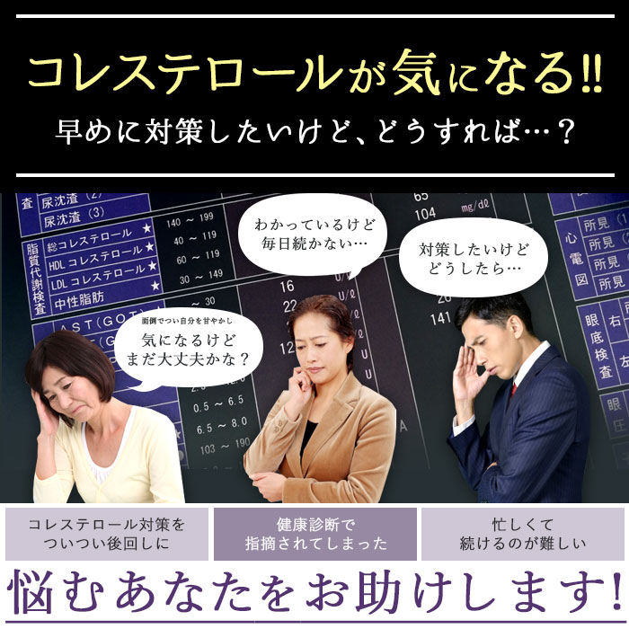 また、DHAやEPAなどの青魚由来の素材とは違いクセやニオイが気にならないコレステロール対策サプリです。