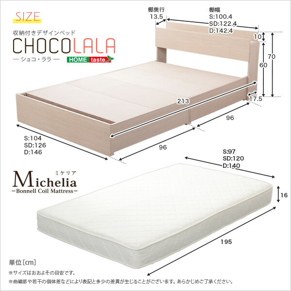 収納付きデザインベッド【ショコ・ララ-CHOCOLALA-(ダブル)】(ロール梱包のボンネルコイルマットレス付き)(代引き不可)