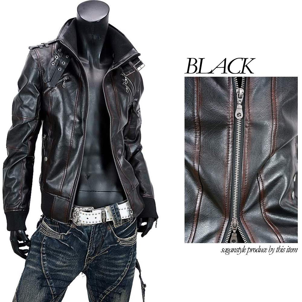 黒 赤 大きいサイズ 3L XXL アウター サガンスタイルヴィンテージレザーの風合いをPUレザーの加工で再現したシングルライダースジャケットです。